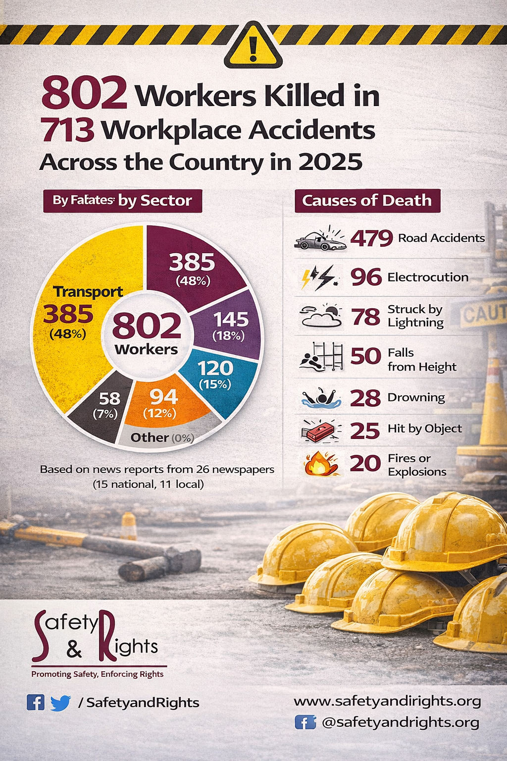 A total of 802 workers were killed in 713 workplace accidents across the country in 2025, including 385 in the transport sector, which is a reflection of the terrible insecurity in the workplace. In 2024, 758 workers were killed in 639 workplace accidents across the country. The number of deaths at work has increased this…